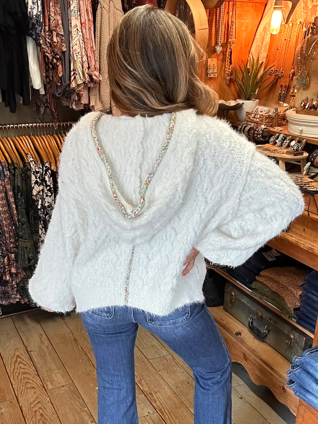 This ultra-plush hoodie wraps you in cozy comfort with a luxe feel you’ll notice instantly. The relaxed fit keeps it easy and wearable, while the delicate floral detail on the hood and drawstrings adds a feminine, elevated touch.