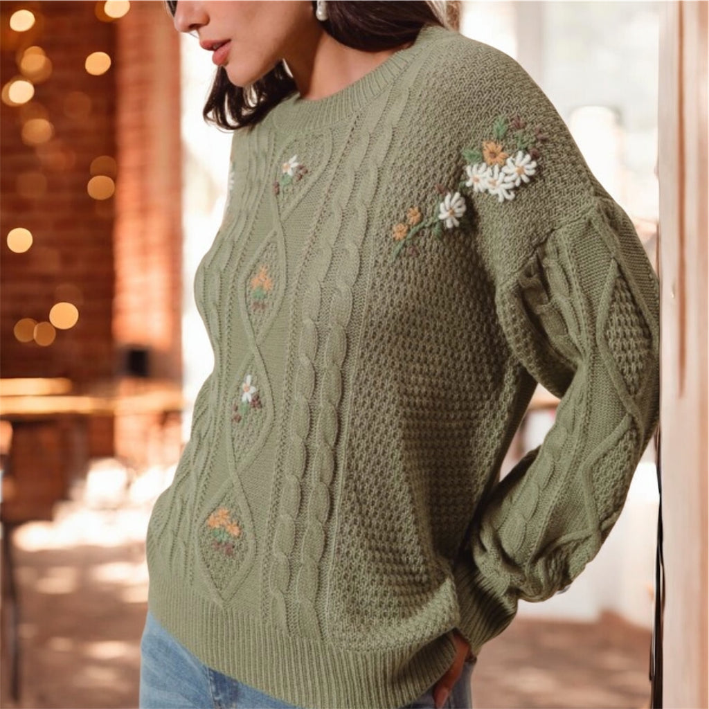 Soft, sweet, and full of cottage-charm, the Daisy Darling Knit brings an easy touch of spring to your everyday wardrobe. Featuring delicate daisy embroidery and a cozy knit feel, this piece feels like something you’d wear on a slow morning with sunshine pouring through the windows. It’s effortlessly feminine, timeless, and made for layering through the seasons.