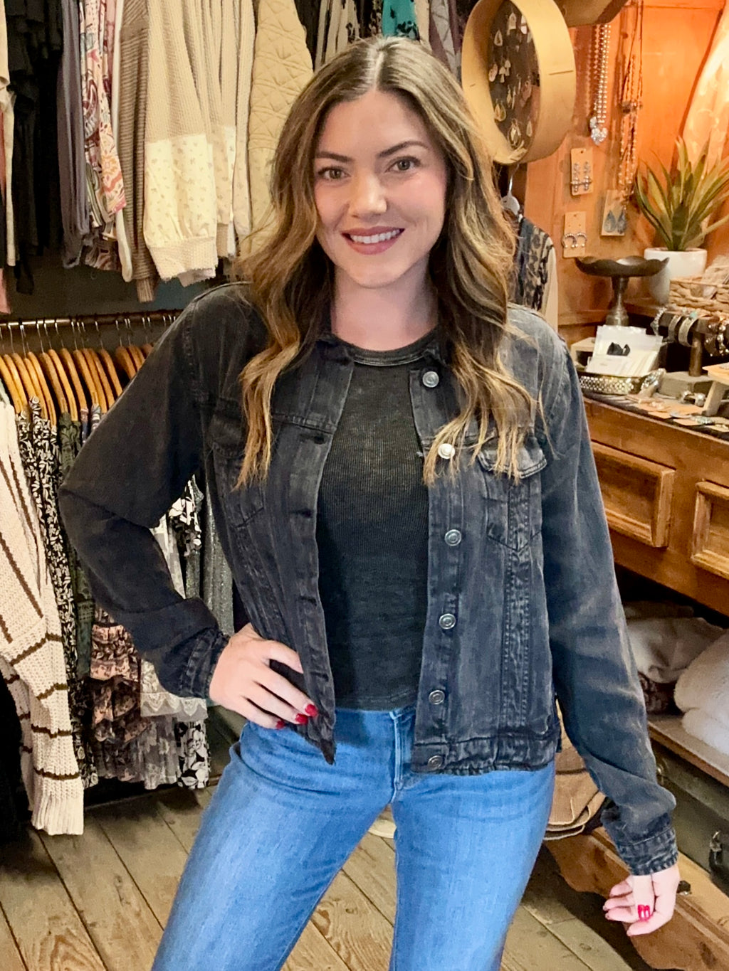 The Stillwater Jacket is that effortless black layer you’ll reach for again and again. Classic, flattering, and easy to style, it has a beautifully soft, broken-in feel that moves with you never stiff, never tight. Comfortable enough for all day, polished enough to finish any outfit.